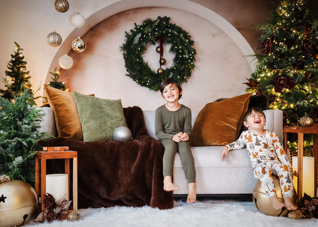 These sessions are thoughtfully crafted to celebrate what makes this time of year so special — from the serene stillness of snowy tree farms to softly lit studio sets that glow with warmth and connection. Every detail, from wardrobe tones to props, is designed with intention to create luminous, storytelling portraits that feel like fine art.