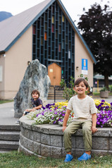 Of course, no adventure with kids is complete without a playground stop. They climbed, ran, and balanced their way across logs and swings, framed by the mountains that rise like guardians around the town.